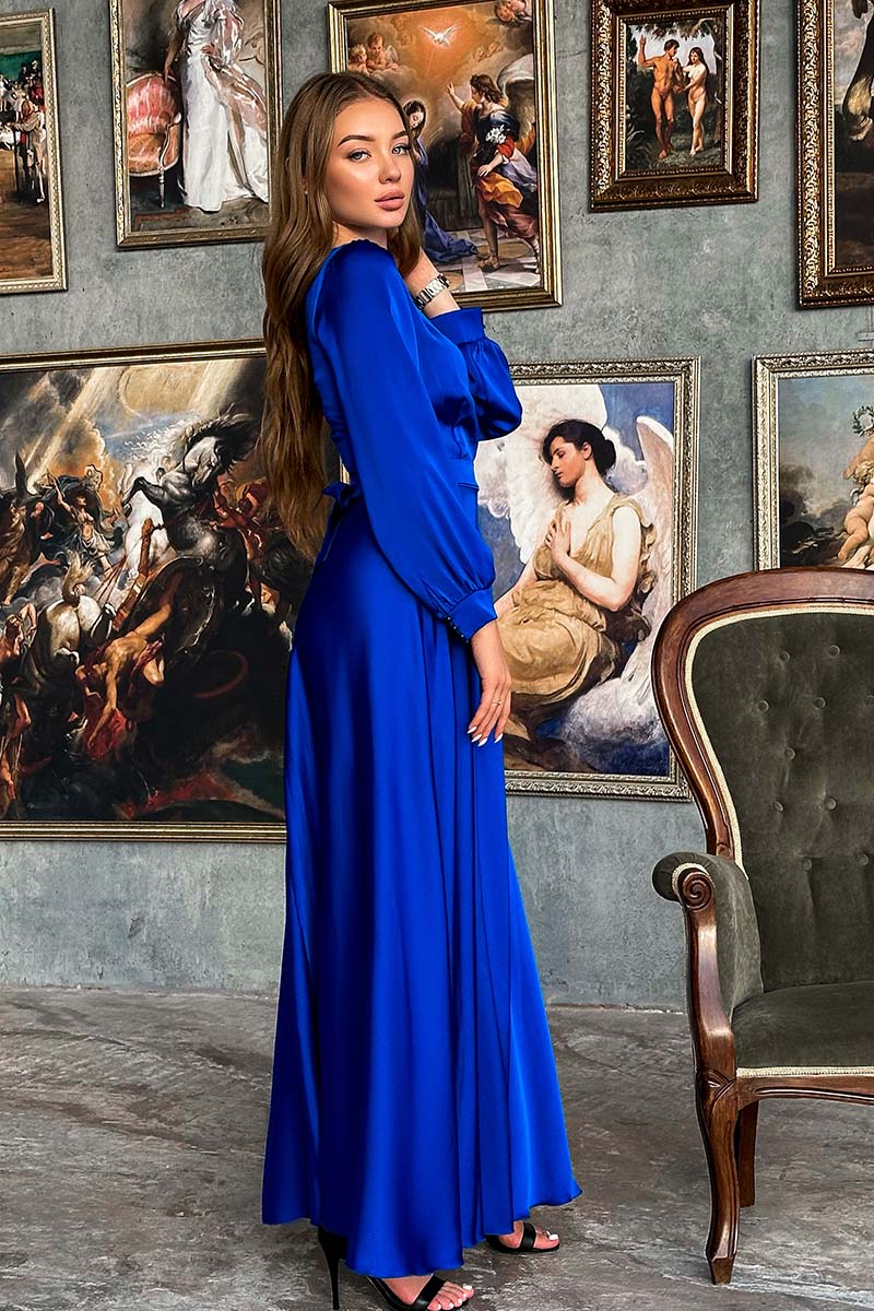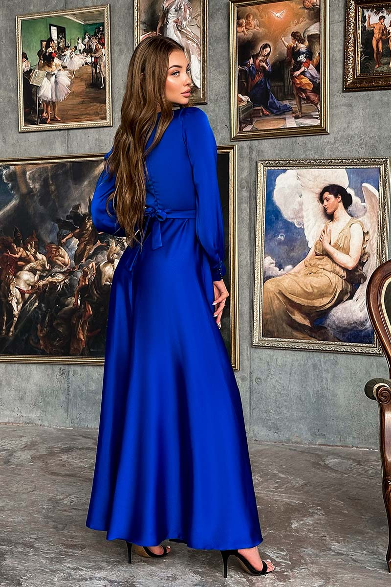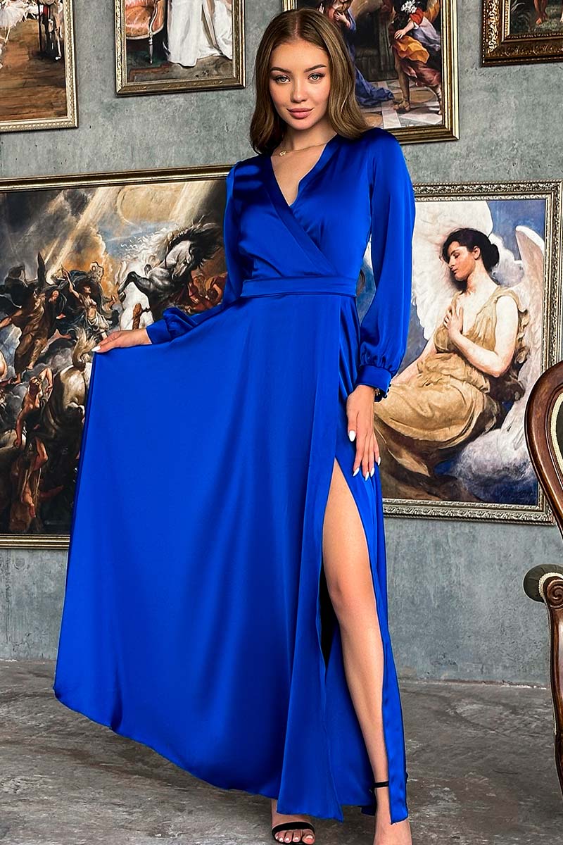Синя Вечірня сукня атлас шовк 23057 – це ідеальний вибір для жінок, які цінують елегантність і комфорт одночасно. Виготовлена з ніжного атласу-шовку, ця сукня має фасон з імітацією запаху, що додає витонченості та жіночності. Рукава сукні прикрашені функціональними манжетами з гудзиками, а пояс, який входить у комплект, підкреслює талію та додає акценту до вашого образу. Потайна блискавка по спинці забезпечує легкість в одяганні та зніманні, роблячи сукню не тільки красивою, але й практичною у використанні.