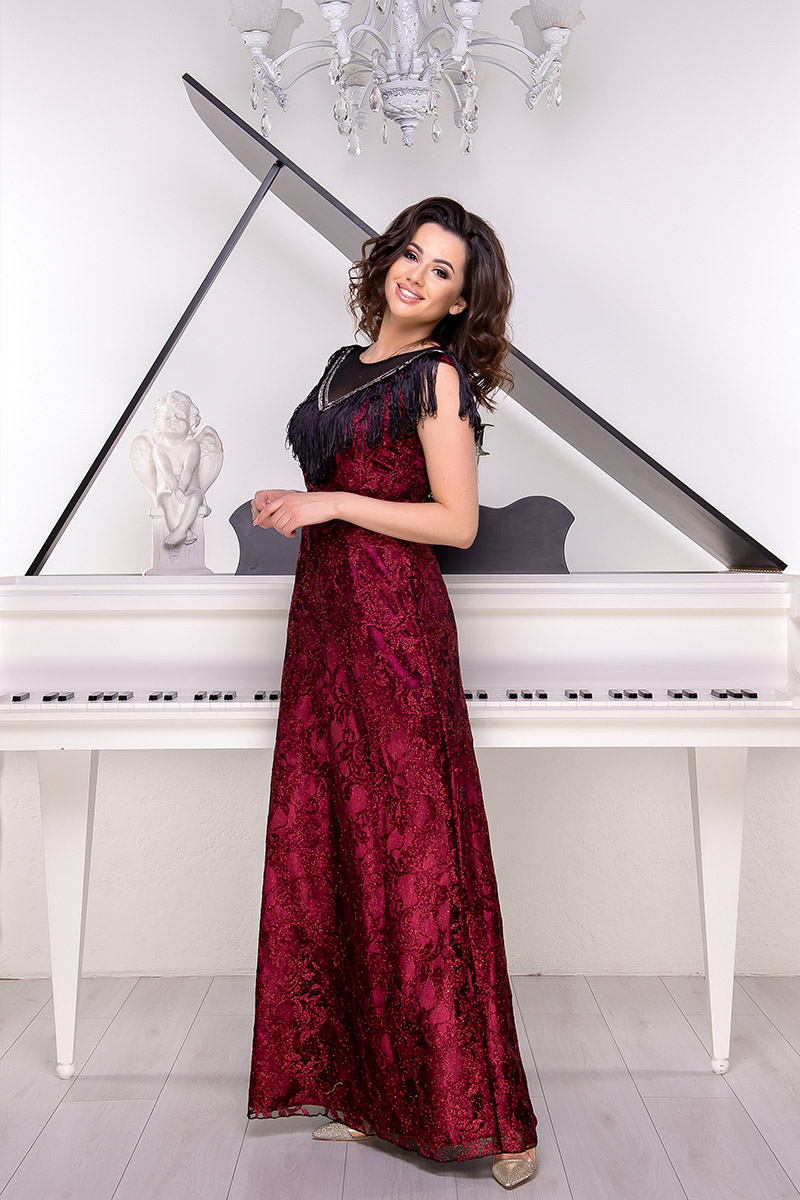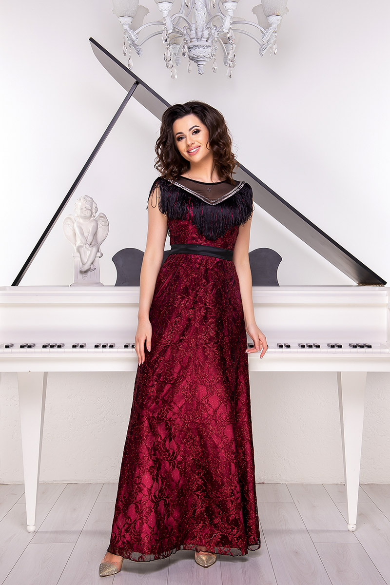 Дивовижне Бордова Вечірня Сукня Гіпюр Бахрома 9046 стане справжнім надбанням гардероба сучасної жінки,