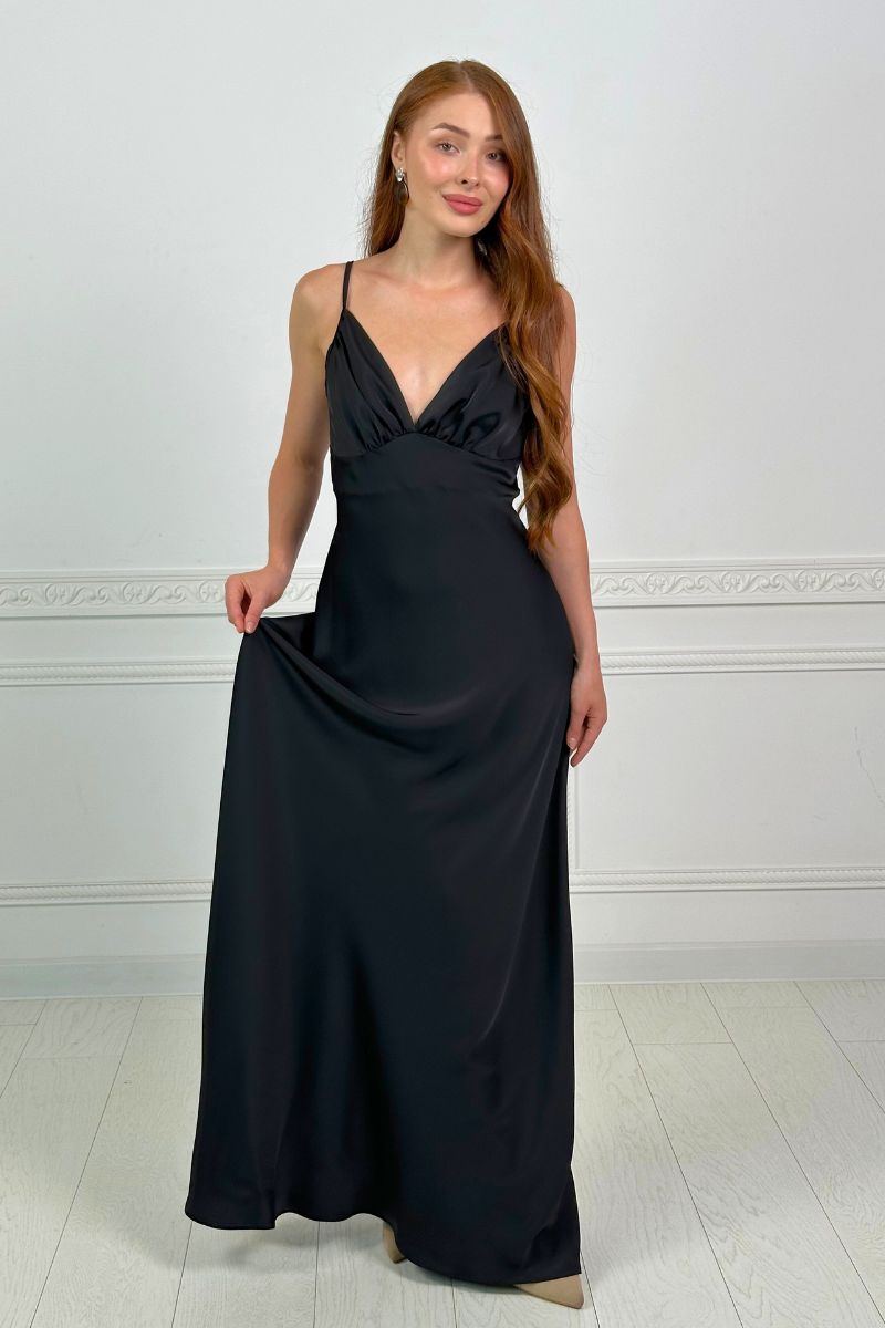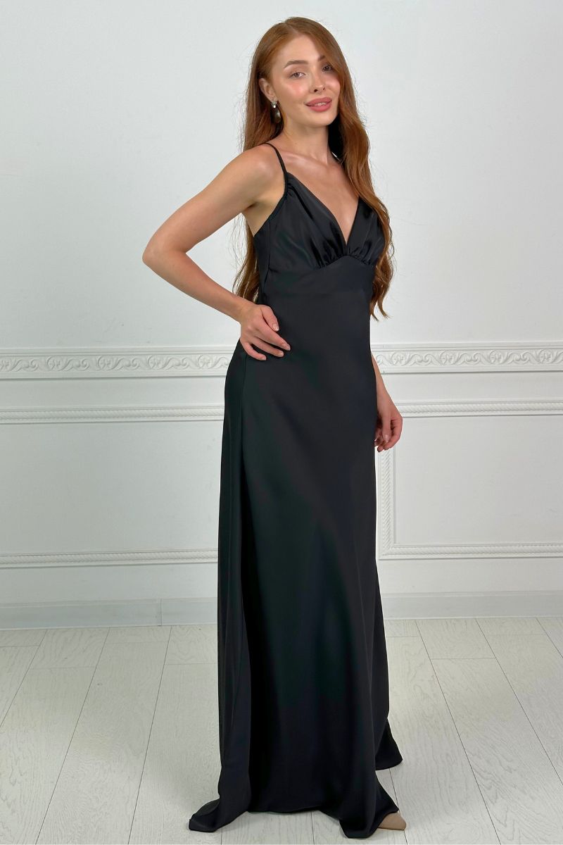 • Вечірня Сукня Комбінація Шовк Максі 25057 Чорна