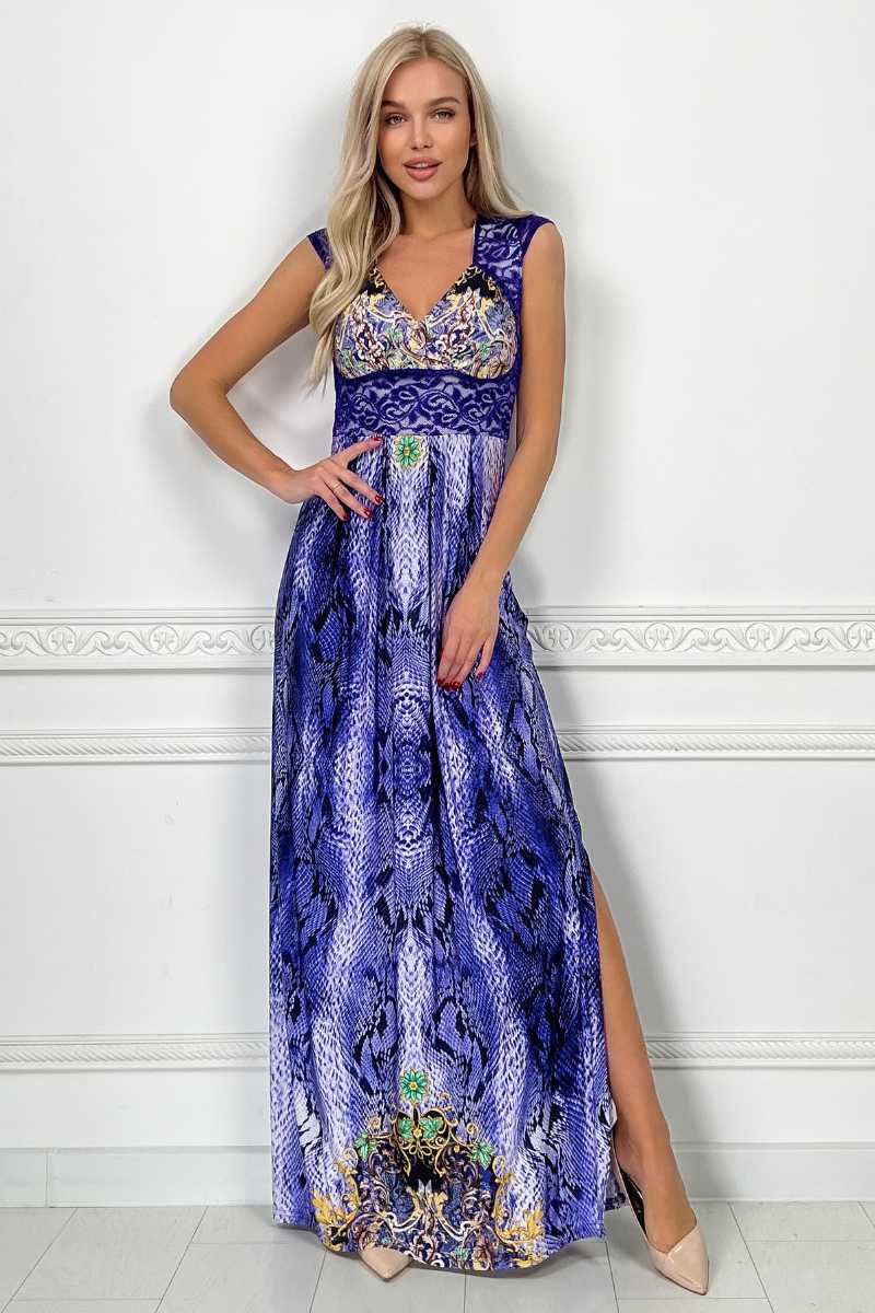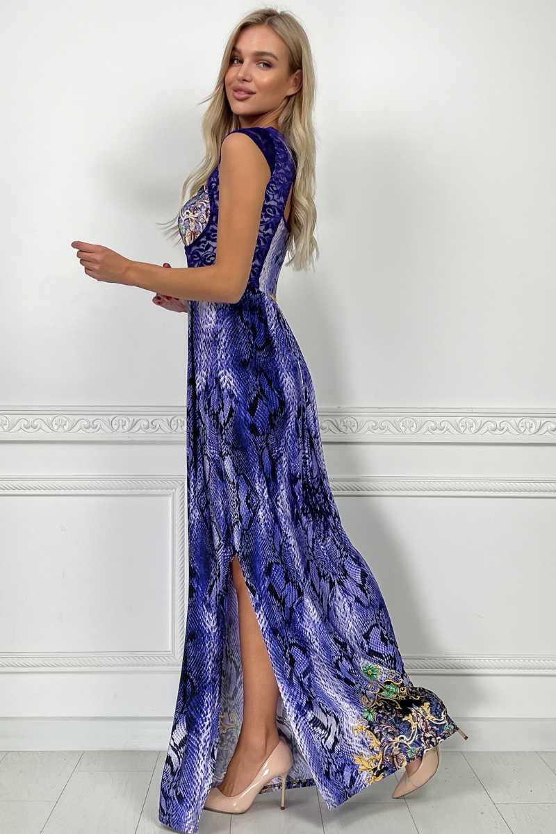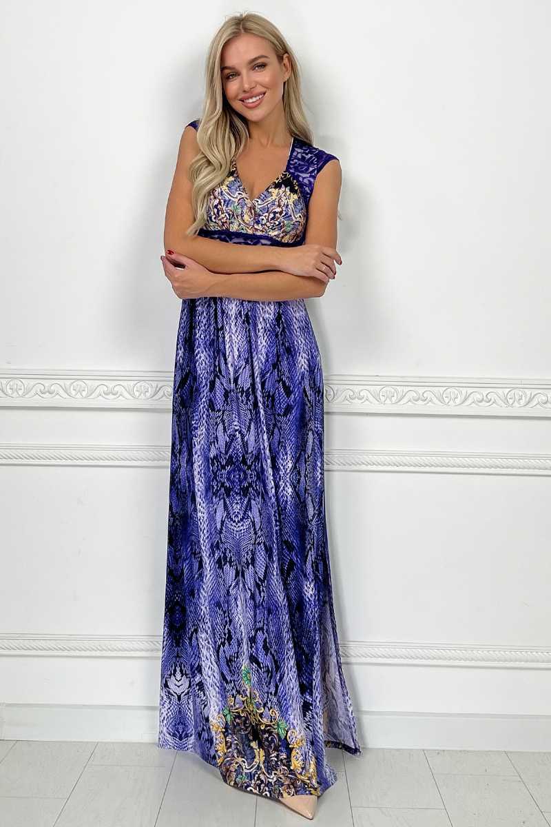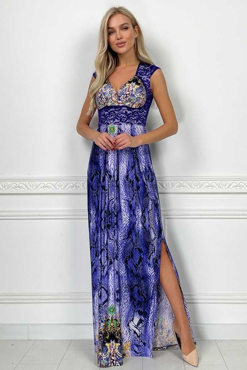 Електрик Вечірня сукня Кристал Максі 4195 — вишуканий вибір для справжніх пошановувачок елегантності. Сукня зроблена з трикотажної тканини кристалл с анімалістичним принтом і доповнена гіпюровими вставками, що надає моделі вишуканості. На спинці виріз і застібка на гудзик, що зробить ваш образ більш оригінальним.