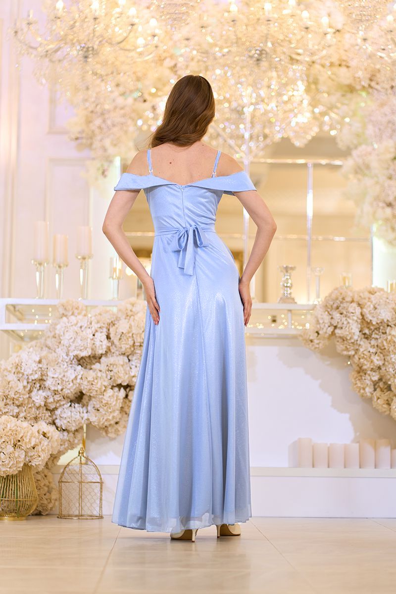 Блакитна Вечірня сукня Шифон Блиск Максі 25038 — це втілення ніжності, легкості та витонченої жіночності, яке зачаровує з першого погляду.