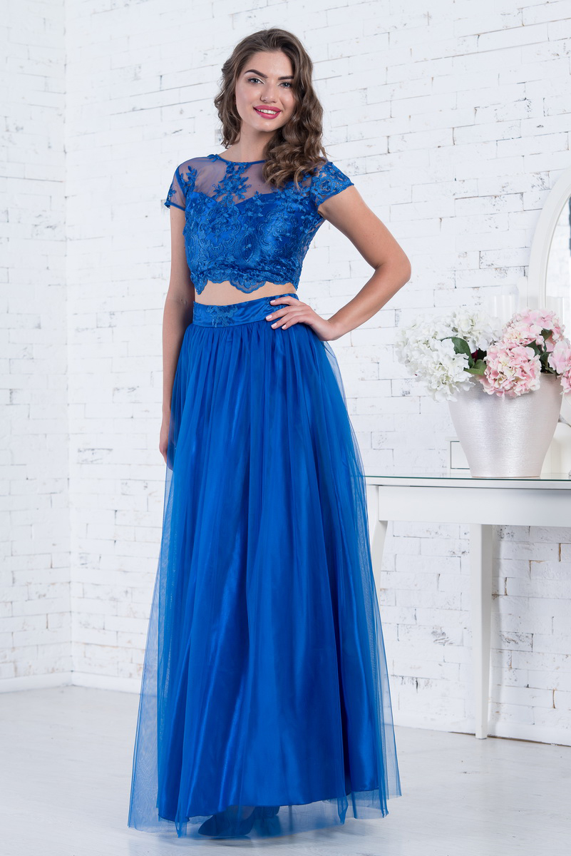 Вечірня сукня – це втілення елегантності та витонченості. Верх виконаний з витонченої вишивки на сітці, що додає особливого шарму, а атласна підкладка забезпечує комфорт та м’якість. Юбка з сітковим покриттям надає сукні легкості та повітряності. Потайна молнія по спинці забезпечує зручність при одяганні.