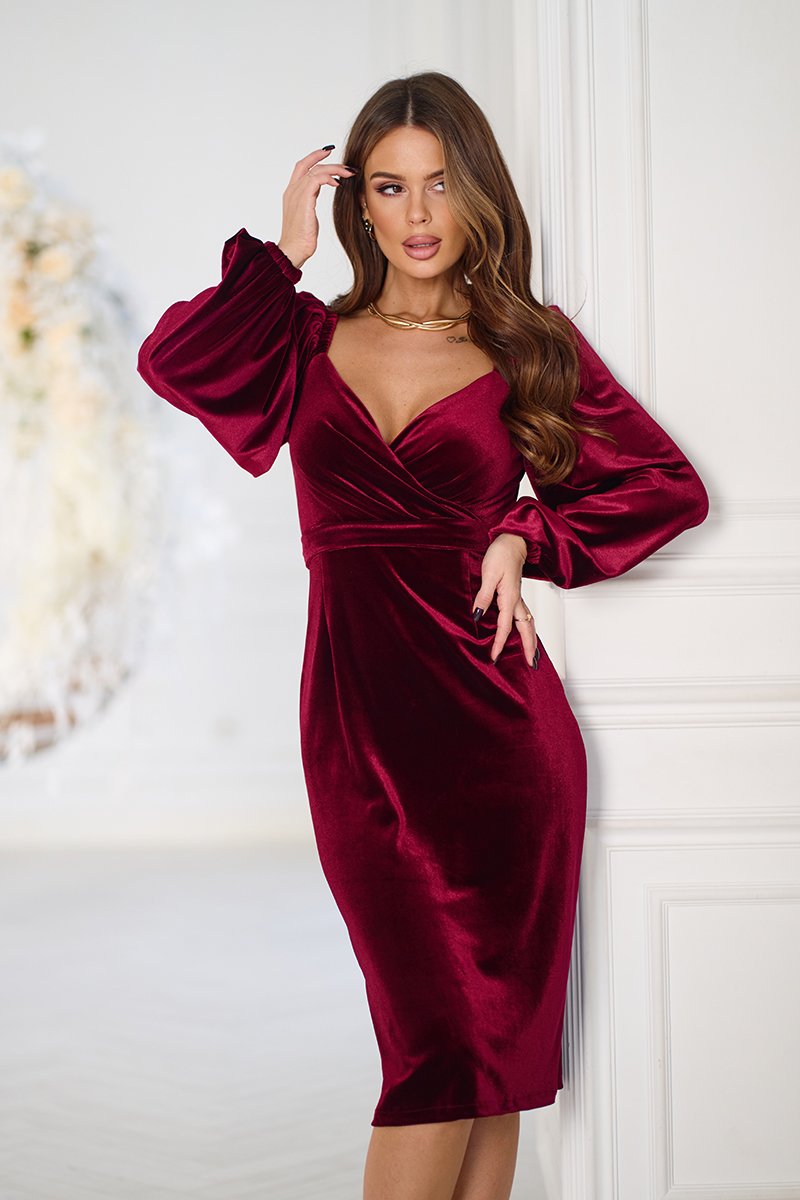 Бордовое Коктейльное Платье Открытые Плечи 24095 – это изысканное коктейльное платье, которое подчеркнет вашу элегантность и женственность. Мягкий бархат бережно облегает фигуру, придавая ей привлекательный силуэт. Особенность модели – открытые плечи и рукава, собранные на резинку, что придает образу грациозности и утонченности.Потайная молния на спинке и шлица на юбке сзади обеспечивают комфорт и легкость в движении. Платье доступно в размерах S – 4ХL.