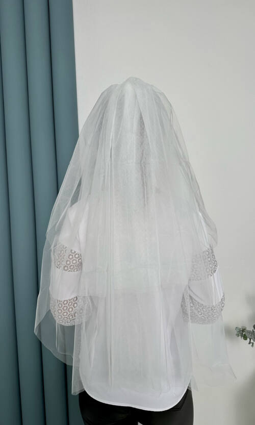 Материал: Евросетка высочайшего качества, которая обеспечивает изысканную лёгкость и элегантность фаты.