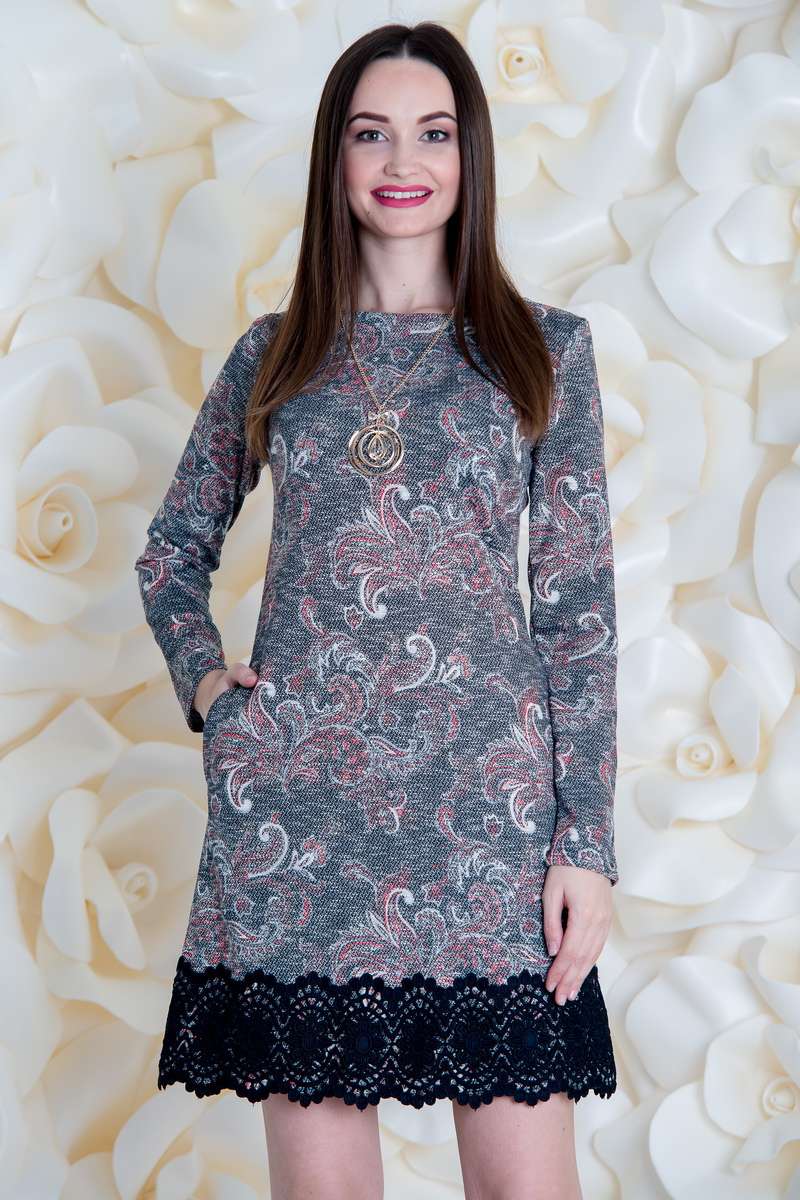 Ніжне чорне мереживо прикрашає кінець сукні, а руки залишаються в теплі шляхом довгого рукава