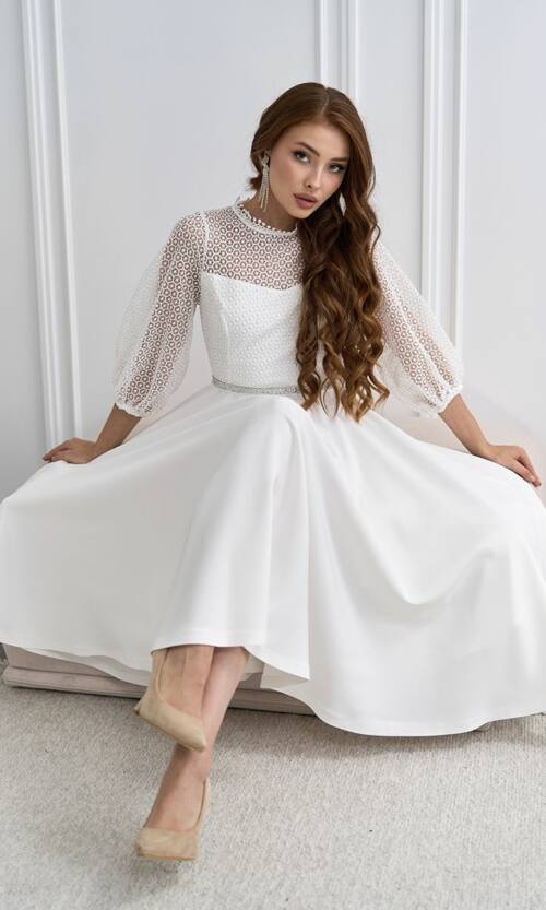 Выбирая Молочное Коктейльное Платье Ажурное Элегантное 24061, вы гарантированно получите наряды, что подчеркнет вашу женственность и сделает вас центром внимания на любом событии.
