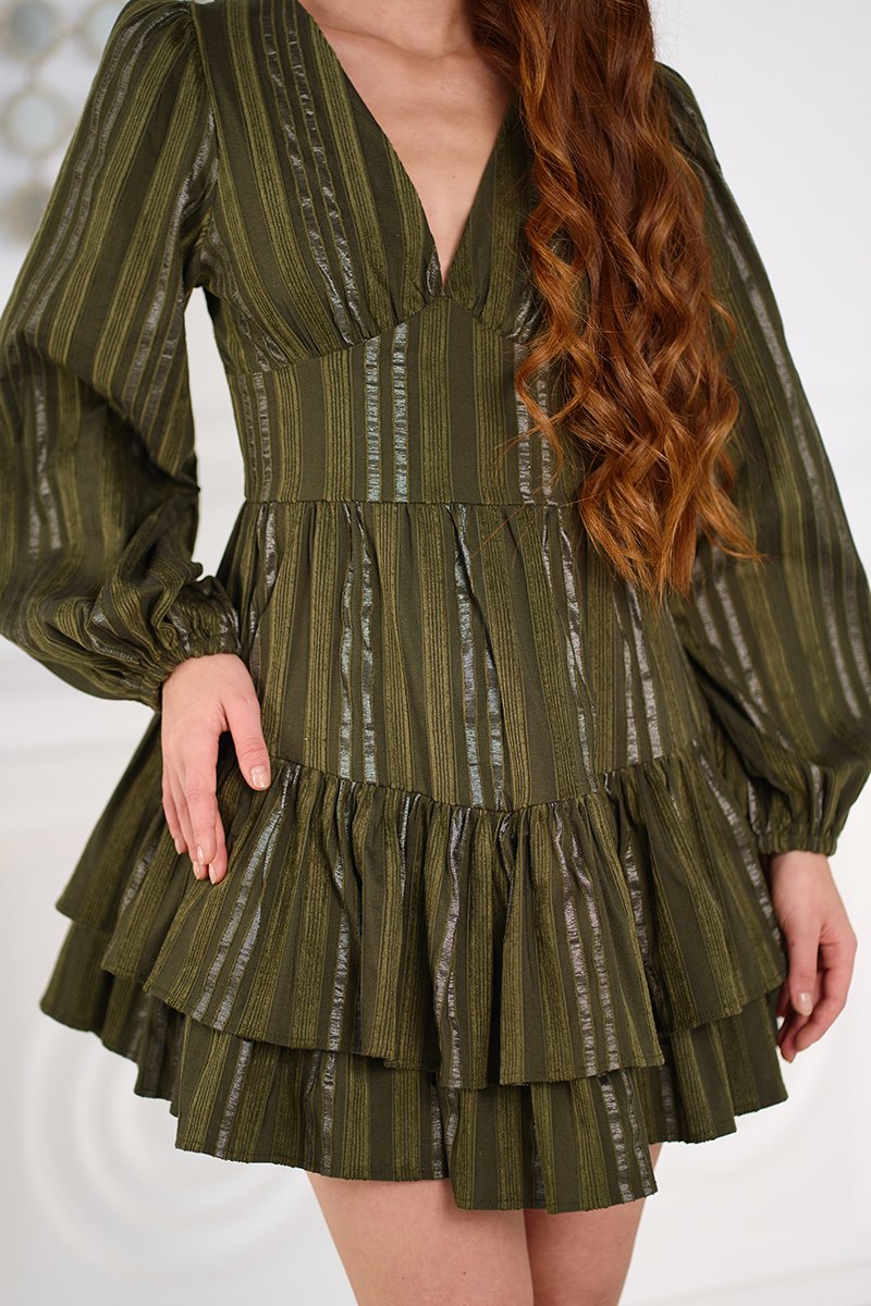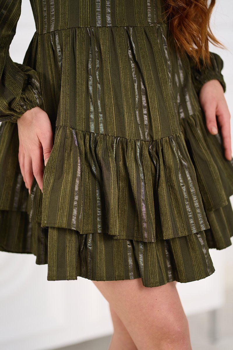 Оливковое Коктейльное платье хлопок 25090 решает сразу несколько задач: помогает создать праздничный образ без лишних усилий, визуально вытягивает фигуру благодаря вертикальному рисунку, а натуральный состав ткани обеспечивает комфорт на протяжении всего вечера. Если вы искали универсальное мини-платье, которое подойдет и для торжеств, и для романтической прогулки – это именно оно.