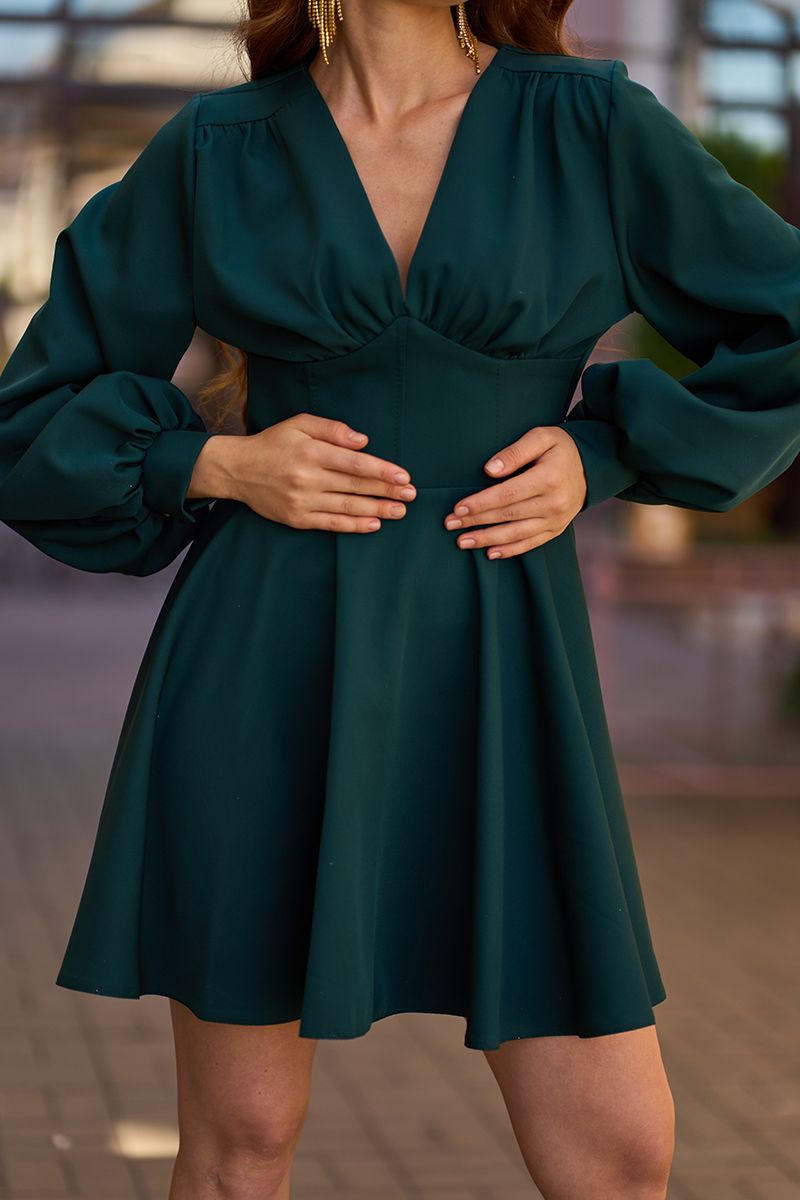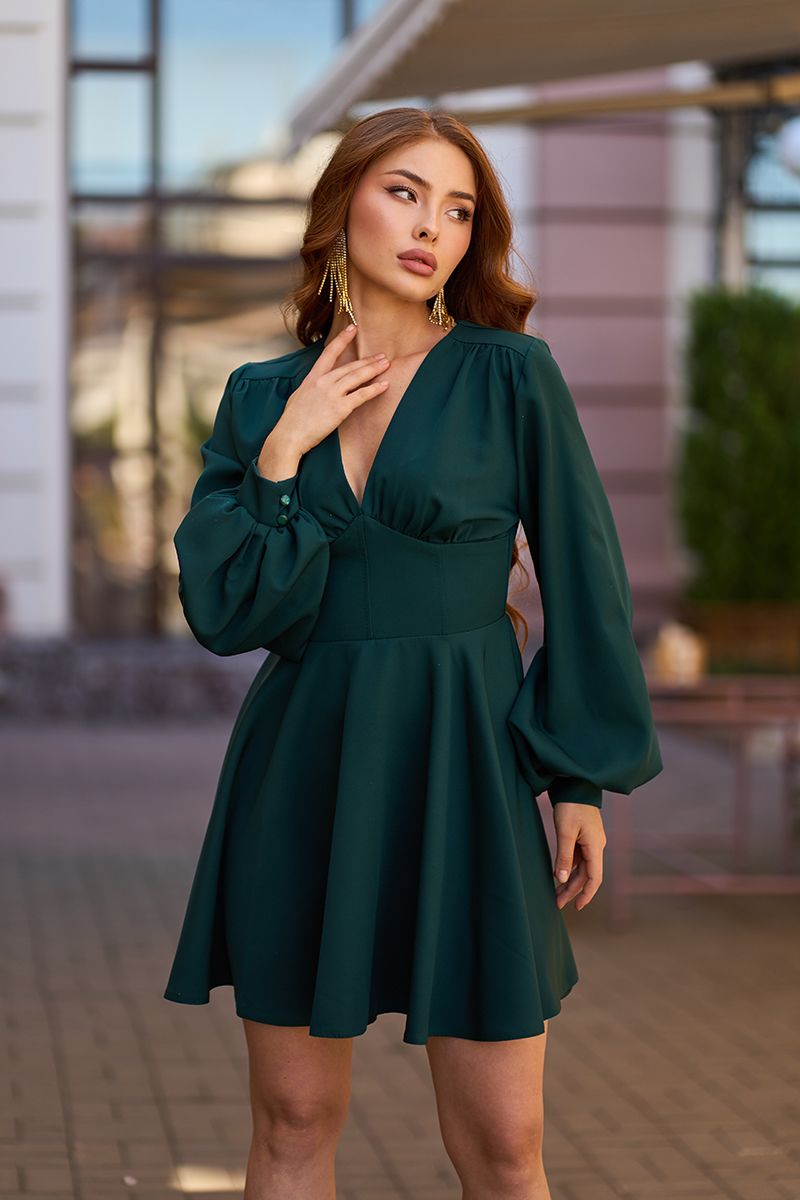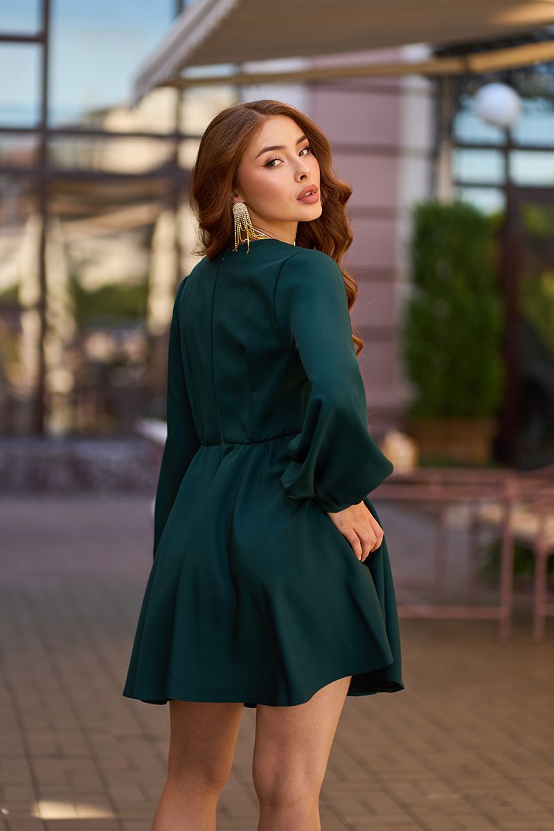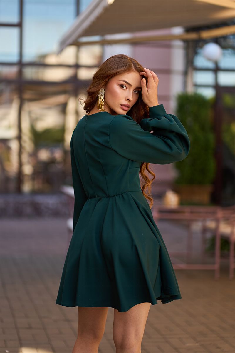 Покупая Зеленое коктейльное платье мини с длинным рукавом 25074, вы решаете сразу несколько задач: вам больше не придется долго искать идеальный вариант для важного события; вы получите образ, сочетающий в себе стиль, комфорт и уверенность. Благодаря продуманному крою и глубокому цвету платье визуально струнится и подчеркивает талию. Она прекрасно сидит на разных типах фигуры и дарит ощущение безупречного стиля каждой женщине.