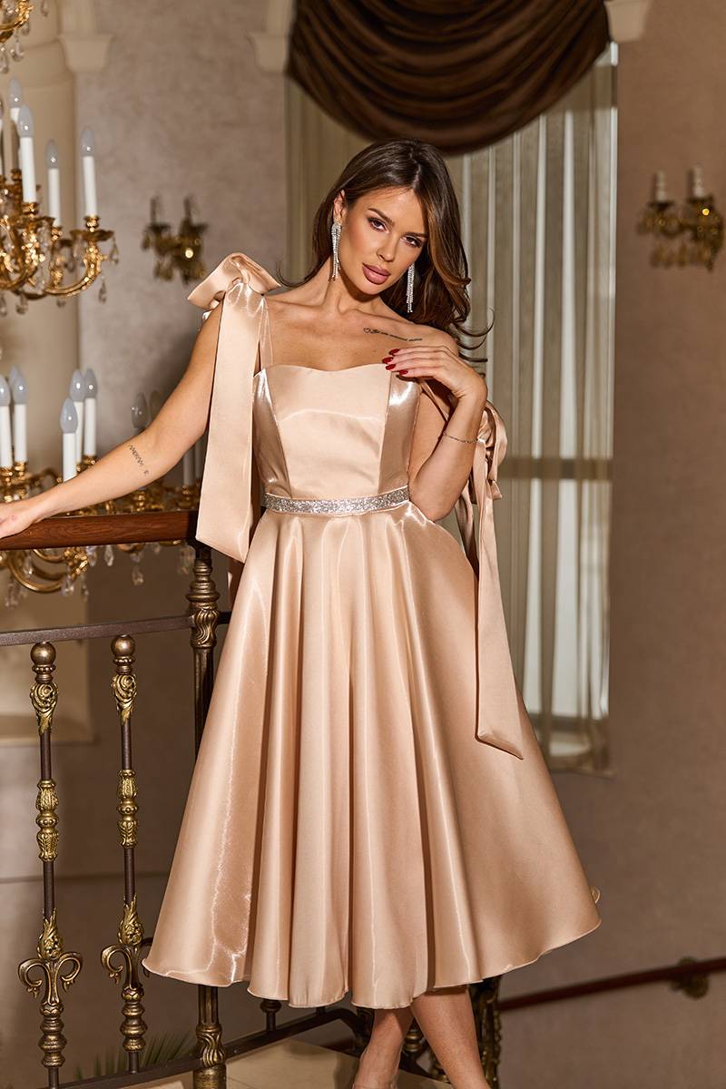 Бежевое корсетное платье с бантами на плечах 26004 – это воплощение сдержанной роскоши, изящества и безупречного вкуса. Благородный бежевый оттенок выглядит дорого, подчеркивает природную красоту и создает элегантный образ для особых событий.