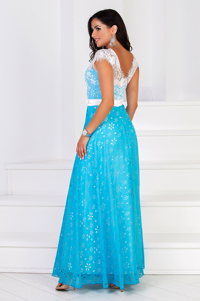 Не пропустіть можливість придбати цю сукню за вигідною ціною – Блакитна Літня Сукня Шифон Перфорація 6024 доступна в останніх розмірах S та М.
