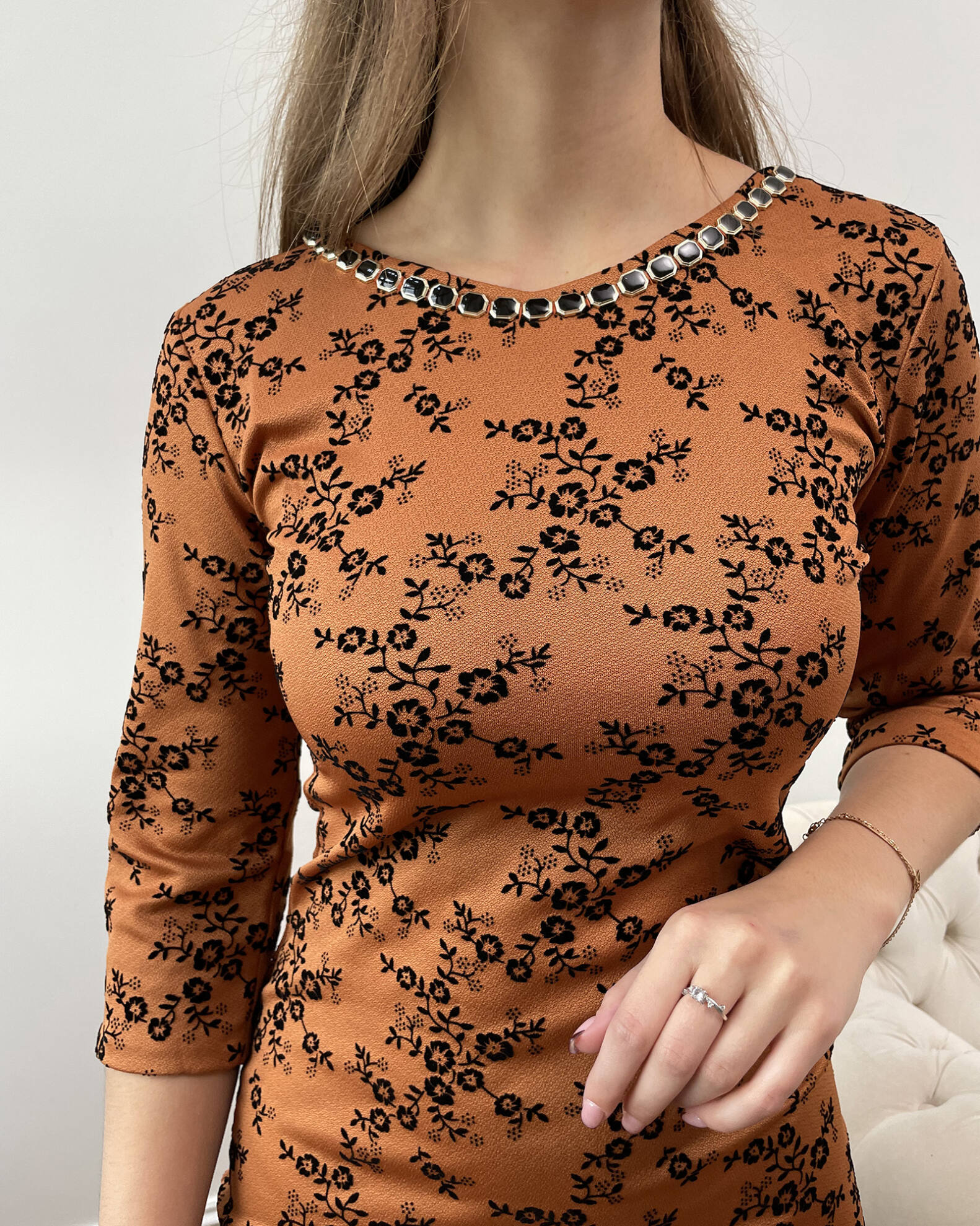 Будьте первым кто оставил отзыв “Повседневное Платье Креп Флок 7233 Теракотовое”