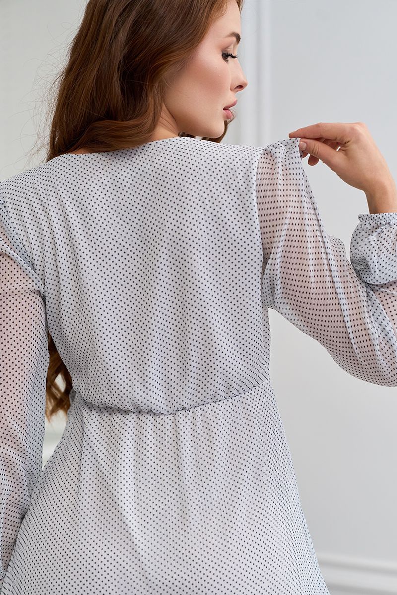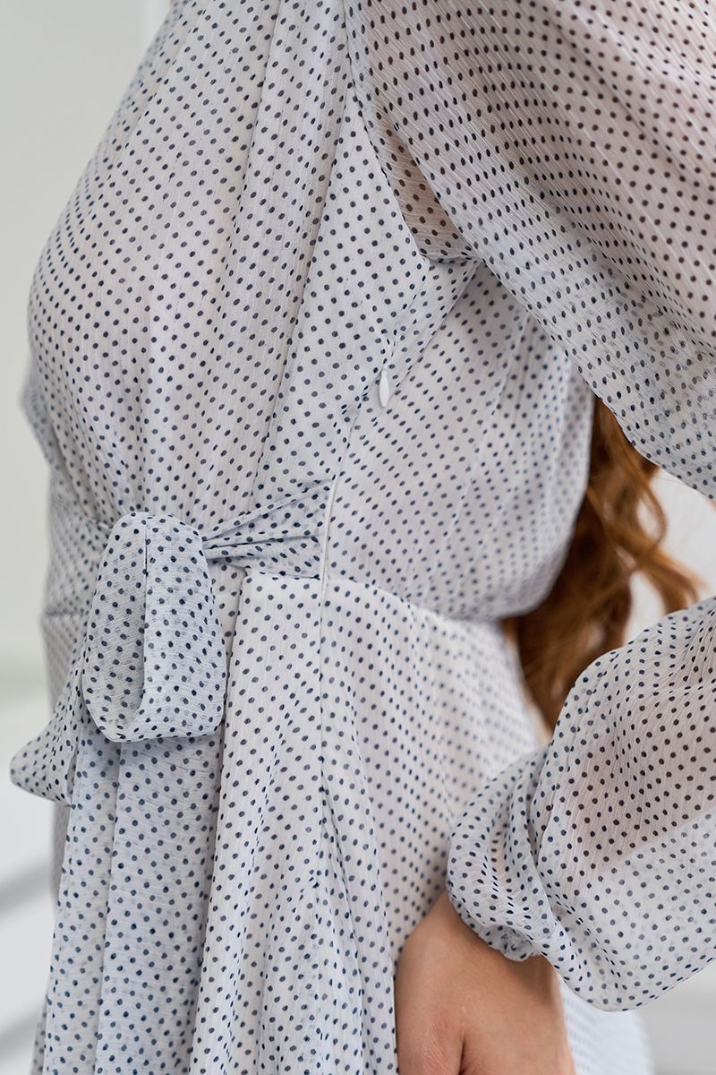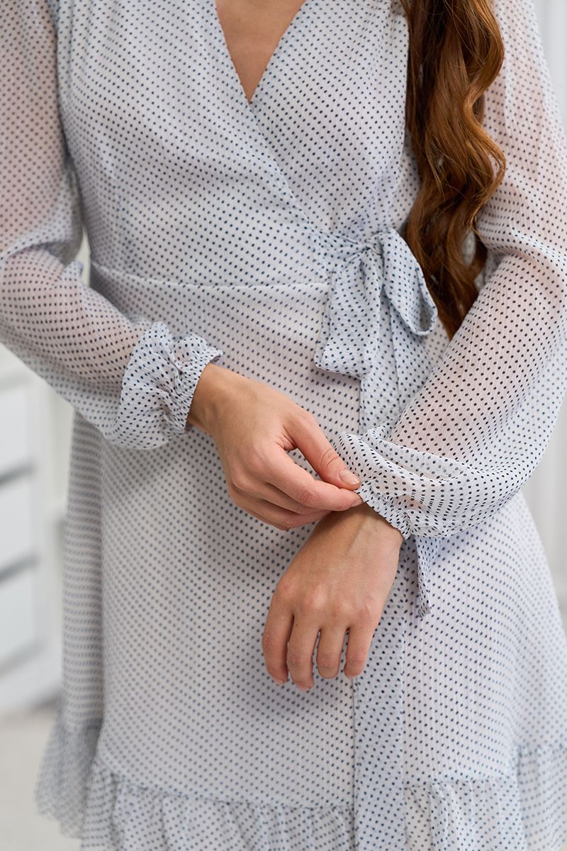 Молочное Повседневное Платье Шифон Горошек 25024 – это воплощение нежности, женственности и легкого флирта. Легкая шифоновая ткань в мелком горошке создает романтическое настроение, а трикотажная подкладка обеспечивает комфорт в течение всего дня. Модель имеет элегантный запах с боковой завязкой, рукава с удобными резинками, а с боковой части – потайную молнию для удобной одежды. Длина мини и игривая оборка по низу придают образу динамики и свежести.