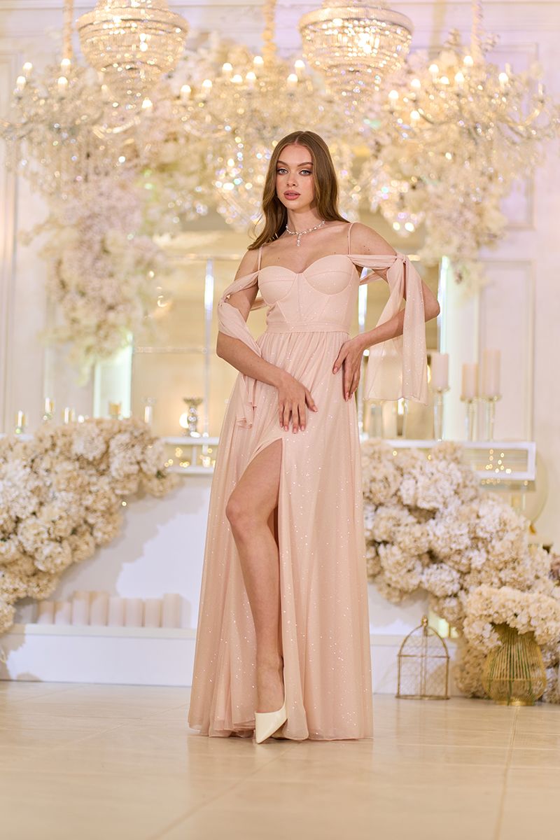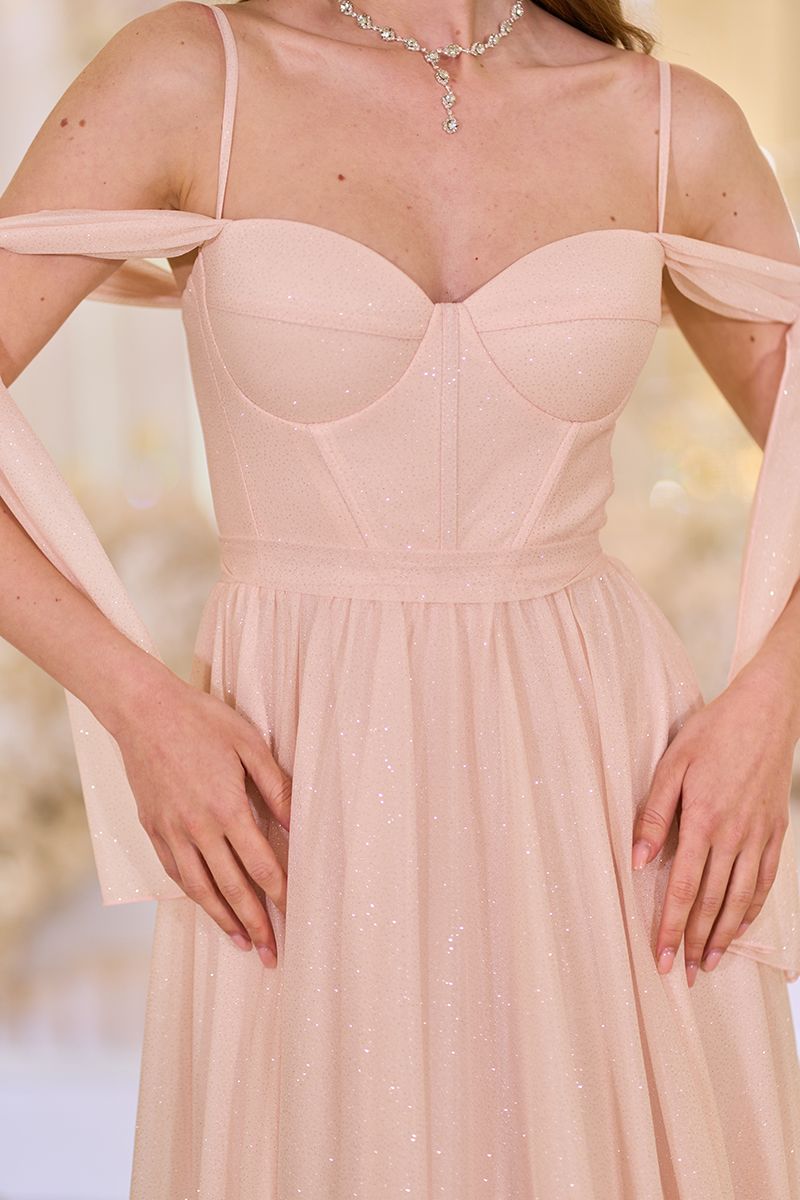 Вечернее Платье Лиф Корсет Макси 25041 Персиковое