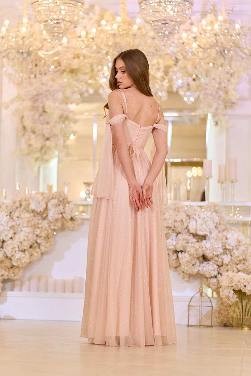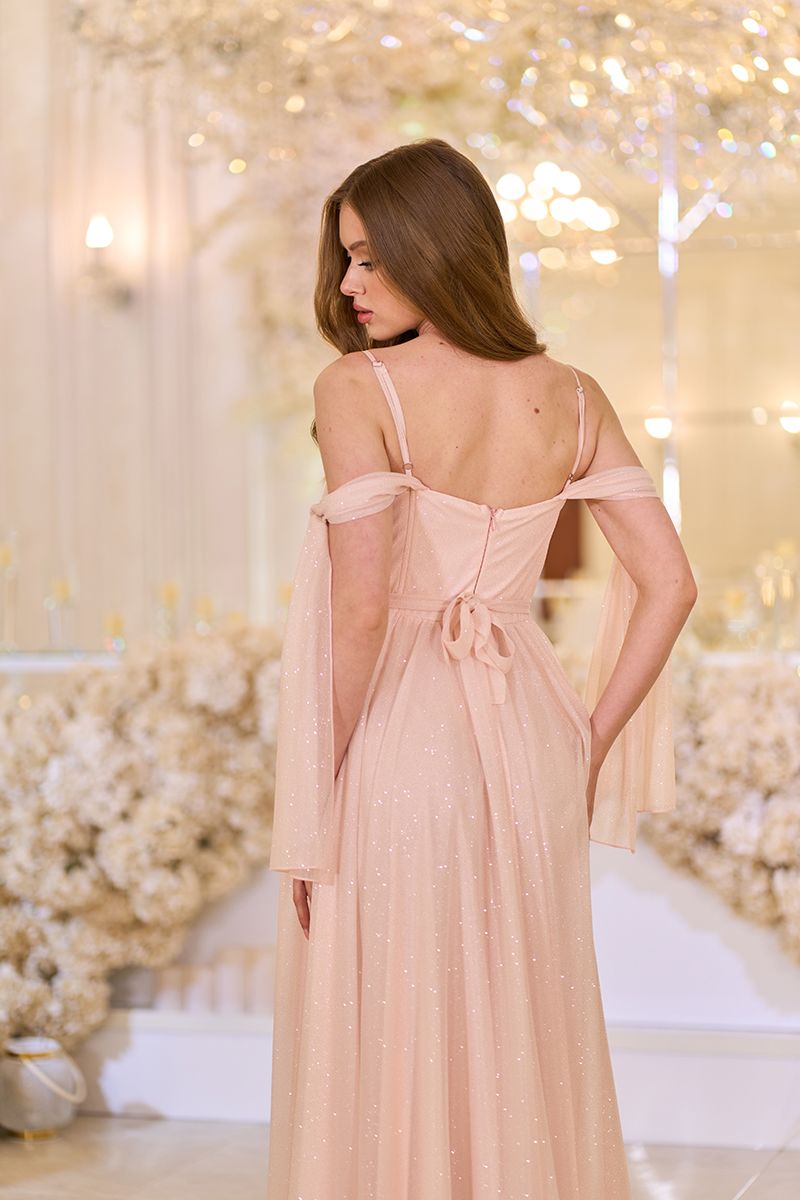 Совет стилиста: это платье идеально для выпускного вечера, свадьбы подруги или романтического ужина. Добавьте длинные серьги, изящную прическу с локонами и туфли в тон – и ваш образ будет безупречным. Персиковый цвет подходит как смуглым, так и светлокожим девушкам, выгодно подчеркивая естественную красоту.