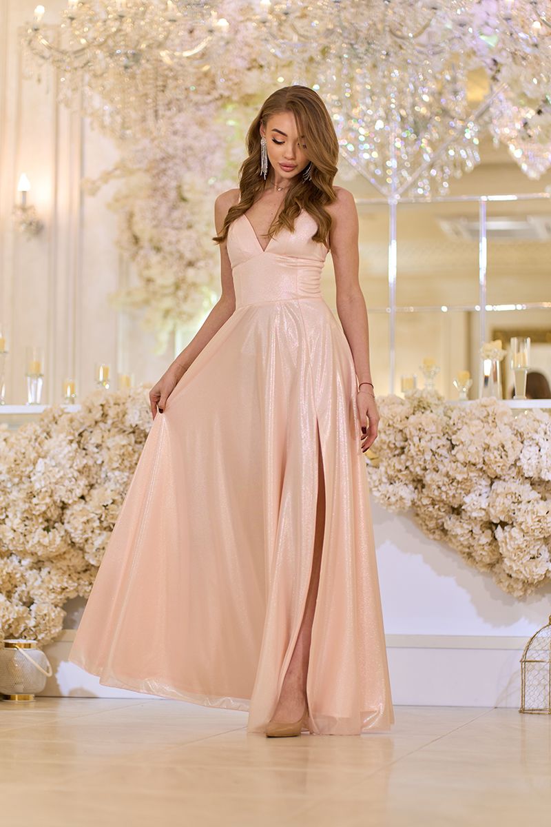Персиковое Вечернее Платье на Тонких Бретелях Формированными Чашками 25037 – это элегантность и женственность в каждом движении. Модель выполнена из легкого шифона с жемчужным блеском, мягко мерцающим при каждом шаге. Формируемые чашки деликатно подчеркивают линию декольте, а тонкие бретели регулируются для идеальной посадки. Внутренняя подкладка из трикотажа в тон ткани обеспечивает комфорт и плавность силуэта. Аккуратная потайная молния на спинке завершает образ, прибавляя удобства. Глубокий вырез на ноге придает образу искушения и динамики.