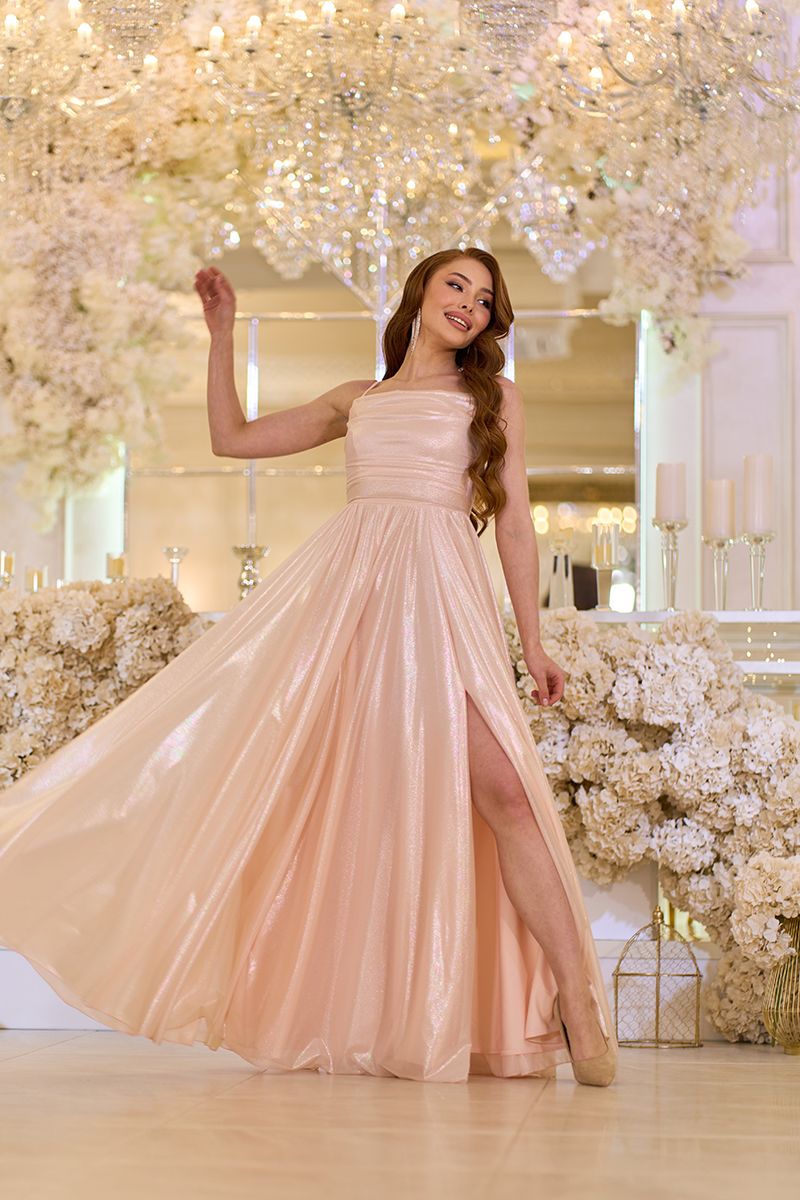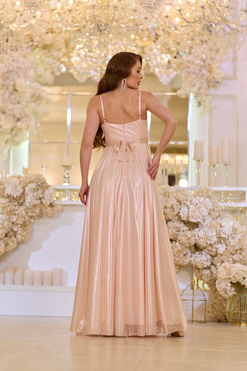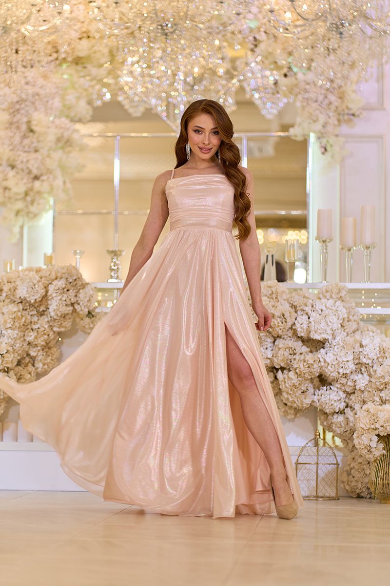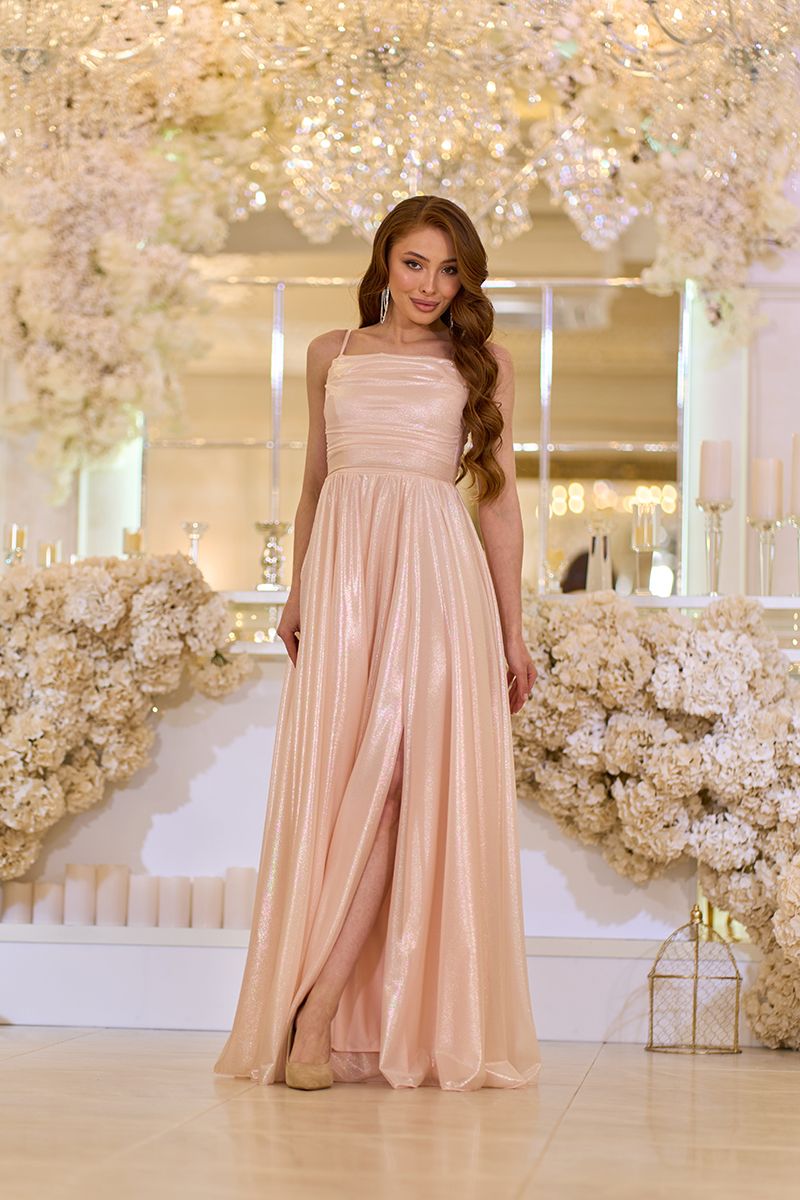 Персиковое Вечернее Платье на Тонких Бретелях с Драпировкой 25042 – это воплощение нежности, женственности и современного гламура. Платье изготовлено из шифона с перламутровым блеском, что при каждом движении создает роскошное сияние. Трикотажная подкладка под цвет основной ткани обеспечивает комфортное прилегание к телу, а мягкая драпировка придает образу элегантности. Тонкие регулируемые бретели позволяют идеально подогнать платье по фигуре, а пояс на талии подчеркивает его изящество. Глубокий разрез на юбке придает образу легкого драматизма, делая каждый шаг волшебным.