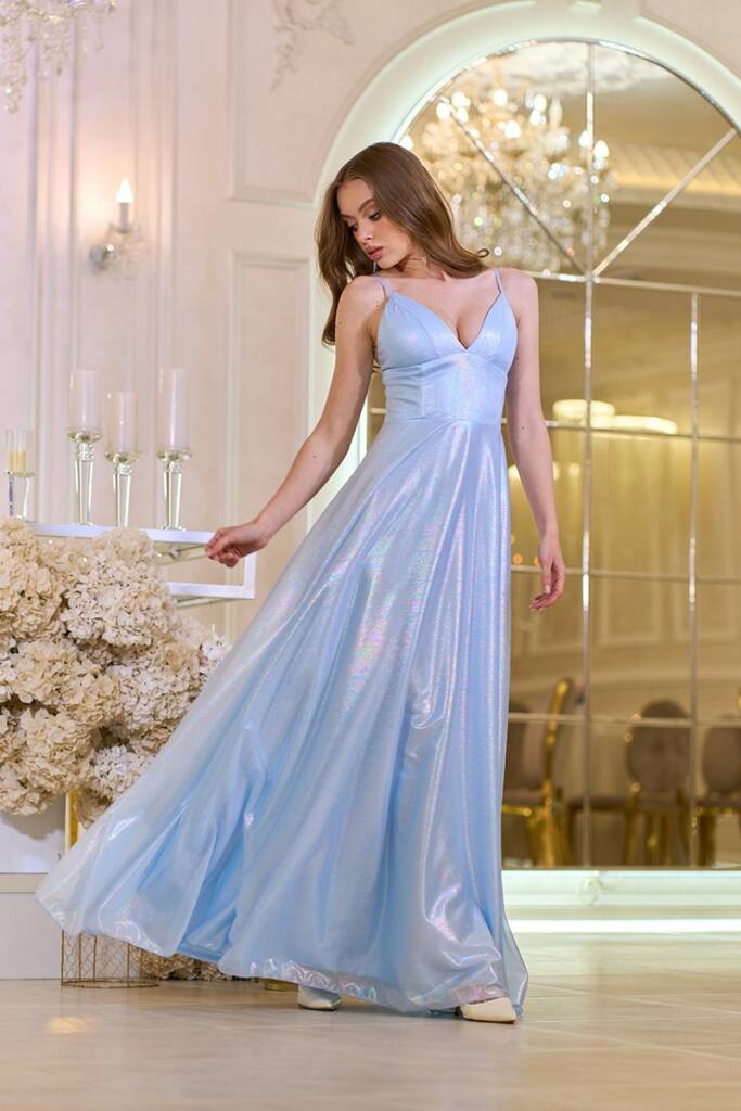 4. Голубой и небесно-голубой – символ доверия, покоя и чистоты. Они придают изящества, особенно на контрасте с белым невестой. Такие цвета представлены в моделях 25038 синяя и 25037 голубая.