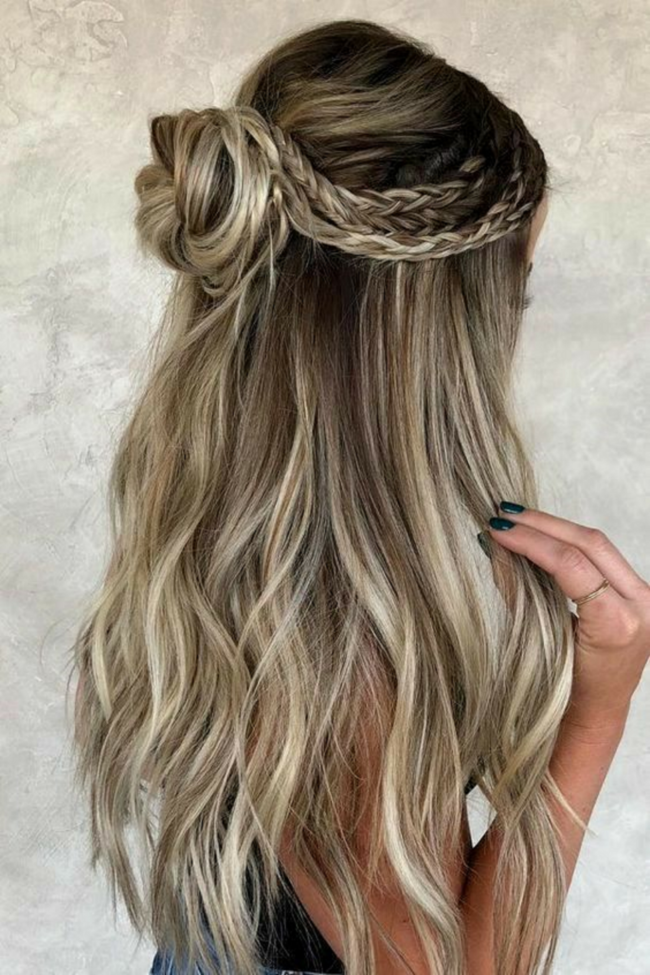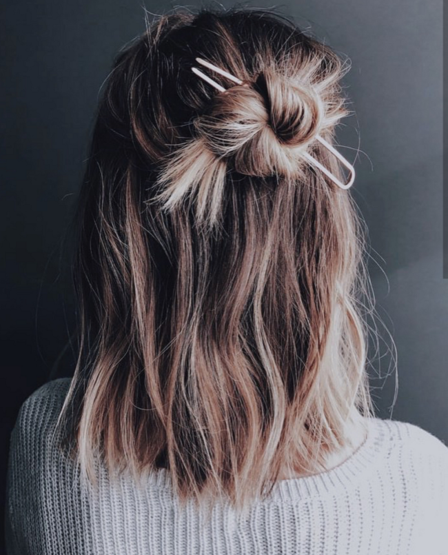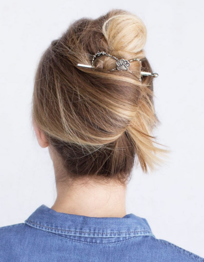 - Пучок. Длинные волосы можно собрать в пучок, который всегда будет модной женской прической. Пучок уместен и в офисе, и на важном совещании, и на романтическом свидании, и на девичнике. Пучок настоящая выручалочка даже в туристическом походе. Его можно просто собрать, а можно декорировать различными украшениями для волос.