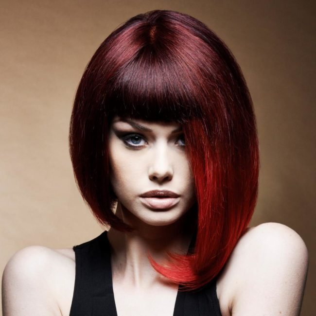 - Асимметрия. Требовательная стрижка. Но исключительно к форме лица, не более. Вьющиеся или прямые волосы – неважно.