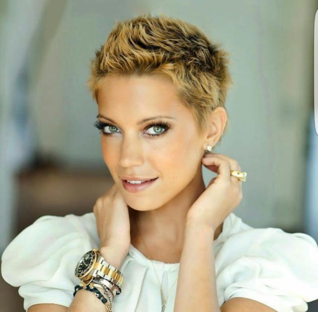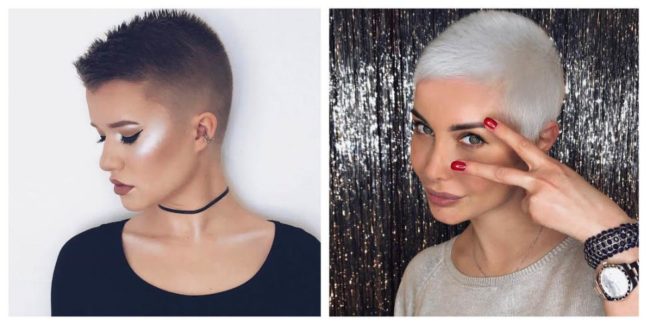 - «Ежик» или «Бобрик». Эта стрижка теряла свою популярность, но сейчас находится на пике. Дело в современном видении положения женщины в обществе. Это стрижка-унисекс. Правда, у нее есть ограничения: ровная, круглая форма черепа и круглое или квадратное лицо с практически идеальными линиями. Стрижка очень короткая, зато дает простор для фантазийного окрашивания.