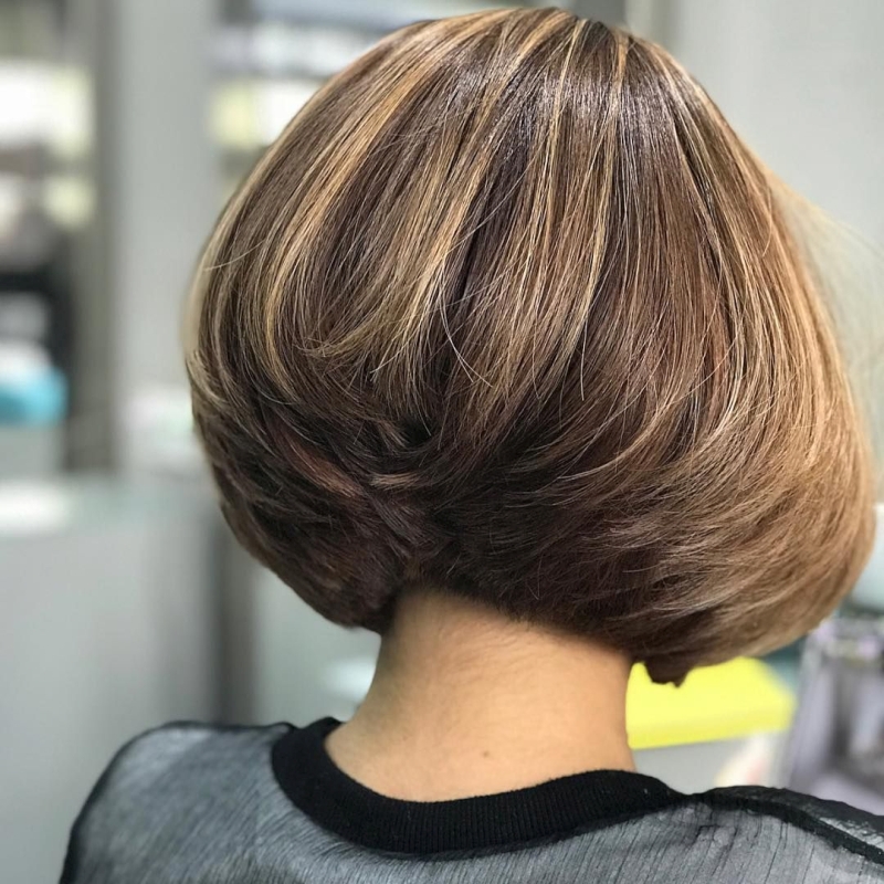 Эта модель создана на базе классической стрижки. Вся разница в выполнении среза. Его делают ярусами. Благодаря такой технике достигается многослойность стрижки, а, следовательно, большой объем. Градуированное каре подходит для обладательниц прямых волос. Слегка волнистые волосы тоже не испортят структуру стрижки, а вот откровенные кудряшки не подходят. Они превратят голову в «воронье гнездо».
