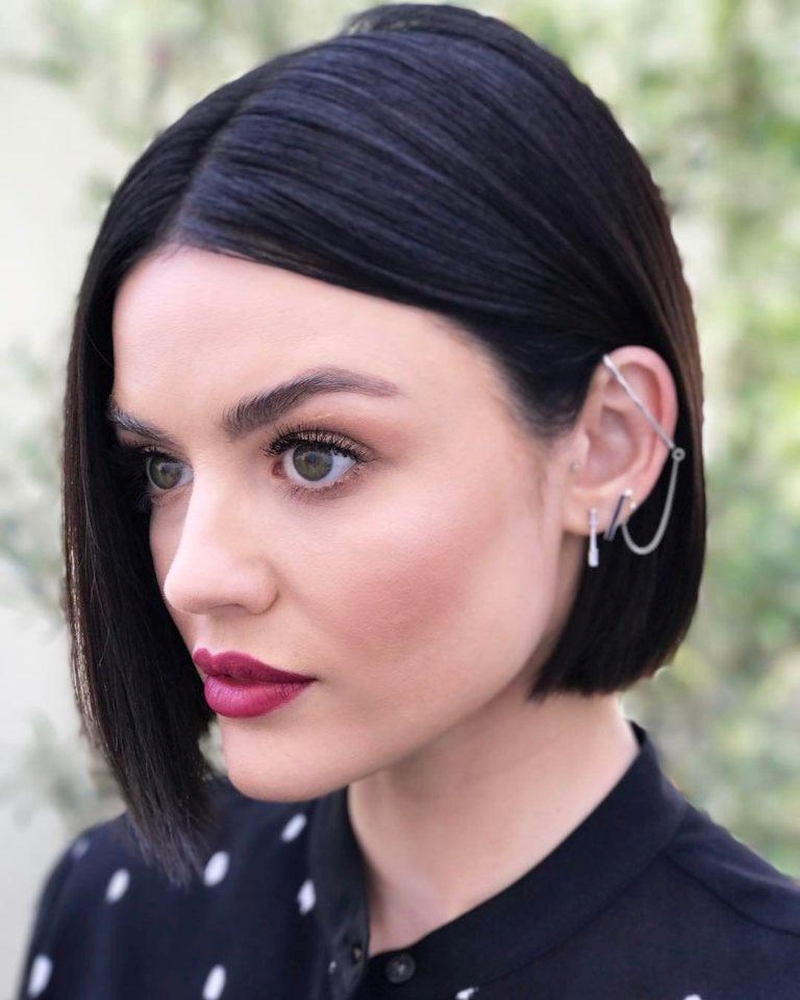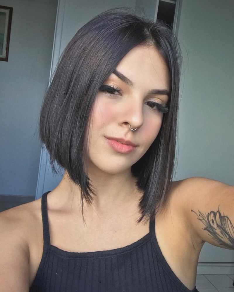 Идеальный вариант для любительниц коротких волос. От каре в стрижке использован прямой срез, а Боб добавил шикарный объем. Результат такого смешения техник очень красив, и мгновенно снискал себе огромное количество поклонниц.