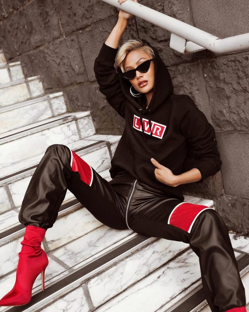 С худи классно создавать многослойные сочетания. Особенно, если ваша толстовка с укороченным рукавом или без него.